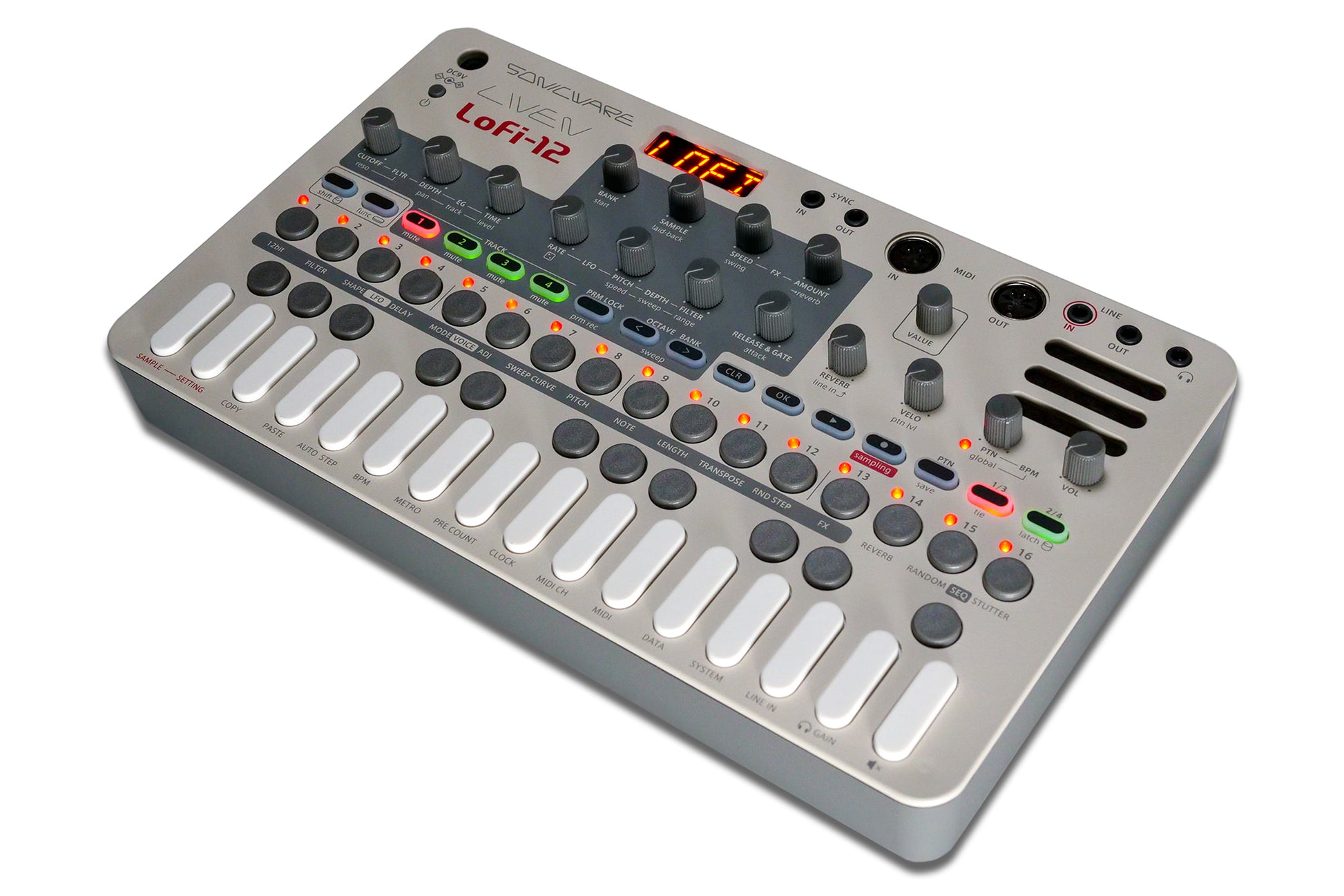 LIVEN Lofi-12 is a Lo-fi Sampling GrooveBox with a 4-track sequencer for easy lo-fi/chill music creation.